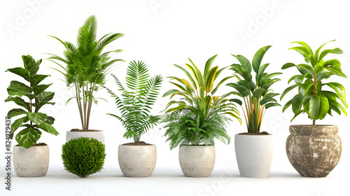 Set of different houseplants in flower pots on white background ,Domestic Foliage Array Houseplants Collection on a White or Clear Surface PNG Transparent Background