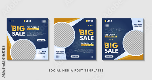 Set of editable square banner templates with photo collage. Suitable for Social Media Post and Online Advertising, Event, and etc. Vector Illustration.