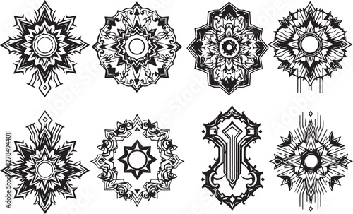 pattern, vector, gear, design, set, element, flower, illustration, symbol, ornament, decoration, icon, art, circle, floral, shape, snowflake, black, vintage, silhouette, mandala, wheel, machine, signs, style, futurism