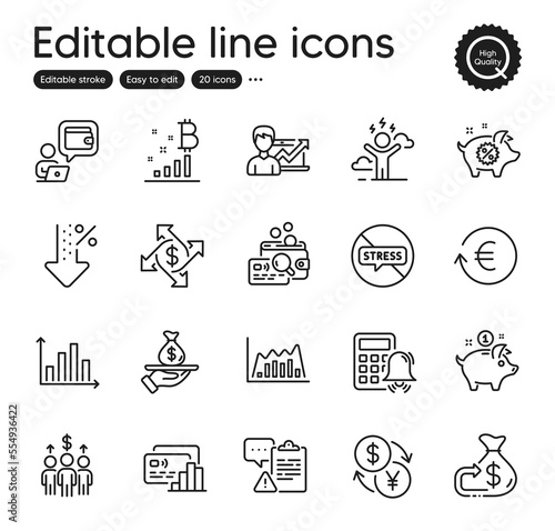 saving, money, exchange, icon, currency, stop, stress, card, loan, inspect, meeting, calculating machine, alarm, infographic, graph, clipboard, baby pig, sale, diagram, low, percent, billfold, difficult, success, business, holiday, verification, present, profit, trade, fear, send, financial, finance, laptop, health, budget, datum, conference, cash, vector, line, outline, web, print, to urbanize, black