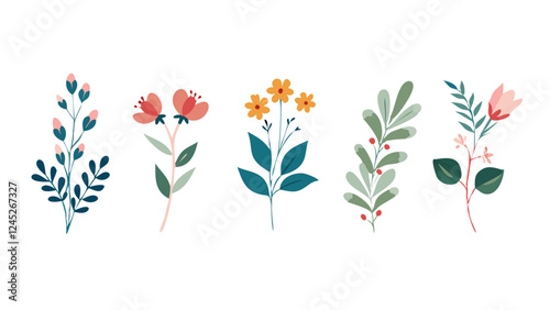 Set of floral branch and minimalist flowers, botanical rustic trendy greenery illustration collection, bouquet of flowers