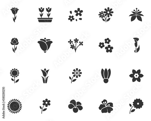 set of flower icons, spring, natural, floral