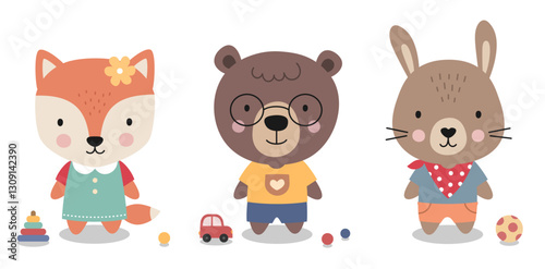 bear, animal, cartoon, baby, teddy, toy, vector, love, illustration, set, funny, fun, children, art, children, cute, brown, animal, childhood, design, smile, face, fox, rabbit, rabbit, baby animal, adorable, collection, happy, birthday, invitation, poster, postcard, children, childcare center, greeting, character, baby shower, joyful, card, trendy, nature, fauna, friendly