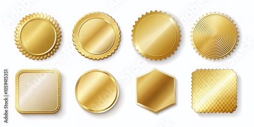 Set of Gold Square and Circle Stickers with Wavy Borders for Sale Offers, Price Tags, and Labels in Architectural Photography Style for Vector Illustration
