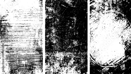 Set Of Grunge, abstract real dust floating over black background for overlay, Cracked dark concrete plaster wall surface with heavy grunge texture for background