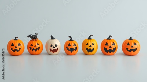 Set of halloween pumpkins placed neatly on white background