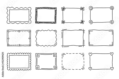 frame, border, doodle, hand-drawn, vignetting, set, rectangle, illustration, scrapbook, black, white, element, hand-made, graphic, isolated, decorative, cute, journal, simple, drawing, outline, line, art, background, template, card, invitation, label, tags, empty, blank, wavy, dotted, nubes, flower, swirl, rough, messy, shape, box, cartoon, comic, ink, drawn, coupon, retro, banner