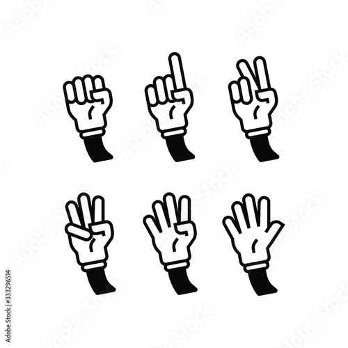 glove, cartoon, set, education, mathematic, line, icon, palm, communication, 5, three, 2, 1, pointing, fist, thumb, gesticulate, poster, infographic, 4, showing, 1, finger, hand, arm, man, gesture, 2, isolated, concept, background, collection, countdown, count, 5, 4, three, signs, symbol, human, white, number, illustration, people, business, vector, design, flat, icon