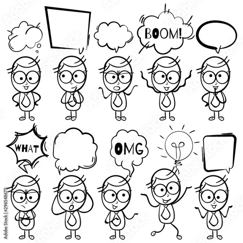Set of happy cartoon doodle figures with different facial expressions, stick man. Stickman Illustration. Hand Drawn. Business icons with funny stickman.