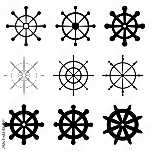helm, marin, nautical, sea, ship, wheel, set, 9, object, design, template