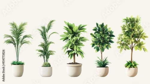 Set of house green indoor plant in modern potted on transparency background