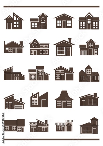 icon, icon, building, building, set, set, architecture, architecture, home, home, house, house, sold, selling, rent, rental, bungalow, bungalow, shed, shed, barn, barn, property, property, window, window, roof, roof, residential, garage, magnifying glass, magnifying glass