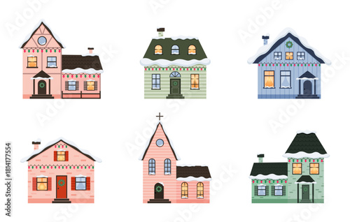 architecture, building, cabin, cartoon, celebration, chalet, christmas, city, city landscape, collection, bungalow, cosy, cute, december, decorated, decoration, europa, european, exterior, facades, festive, flat, garland, graphic, holiday, house, illustration, isolated, landscape, light, new year, outdoors, roof, scandinavian, set, snow, snowy, suburb, suburban, town, traditional, vector, village, vintage, white background, window, winter, chaplet, christmas