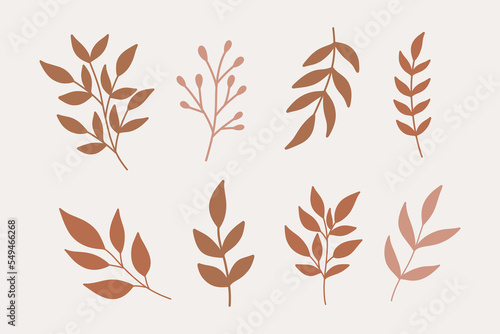 Set of modern floral elements.Flower and green leaves.Hand draw botanical.
