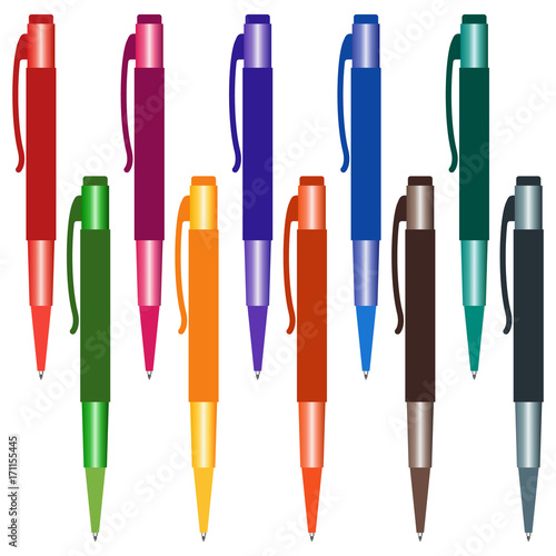 Set of multi-colored pens on a white background. Vector illustration.