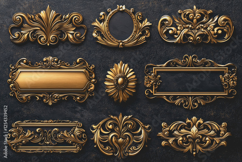 Set of ornate gold frames and decorative ornaments for art or photography display