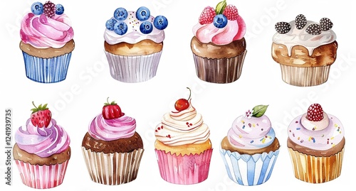 set, card, greeting card, cupcake, watercolor, birthday, cupcake, background, cake, birthday cake, many-coloured, party, event, celebration, baked, copy space, food, fun, yellow, red, blue, birthday gift, candy, cream, decoration, dessert, sweet food, gift, holiday, homemade, drawing, art, paint, sweet, frosting, pink, muffin, chocolate, decorated, christmas, delicious, painted, berry, print, strawberry, cartoon, cherry