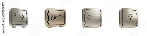 Set of Password Vault Icons with Lock and Security Features Isolated on Transparent Background