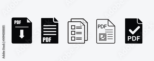 Set of PDF File Icons in Line and Silhouette Vector Style on White Background