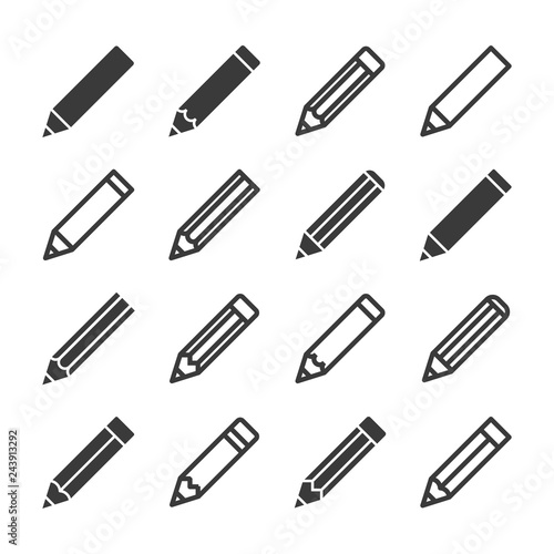 set of pencil icons isolated on white background