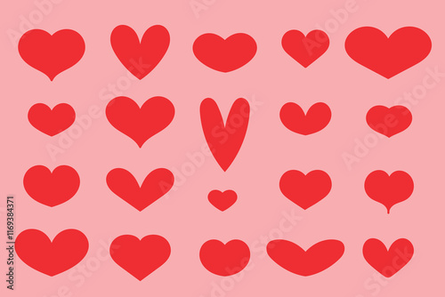 Set of red hearts on a pink background. Vector illustration.