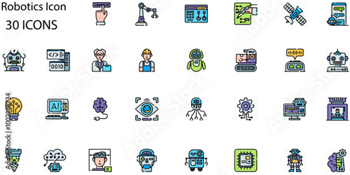 Set of Robotics icons. Line art style icons bundle. vector illustration