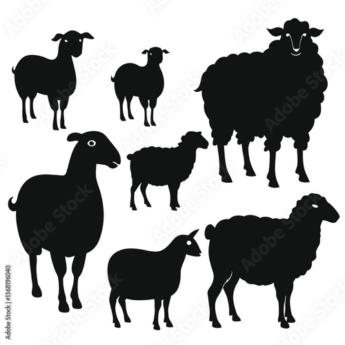 set of sheep collection of silhouettes of black vector