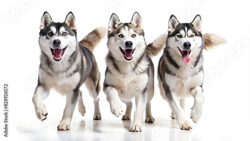 Set Of Siberian Husky Dogs Jumping Happily, Set Of Dog Isolated On White Background, Dog Jump
