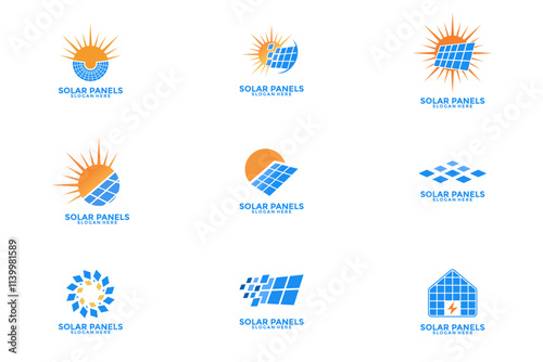 Set of Solar panel logo vector design. Modern Solar Energy logo icon vector template collections