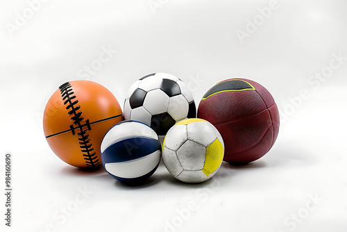 sports equipment, football, football, tennis ball, basketball, volleyball, golf ball, baseball, white background