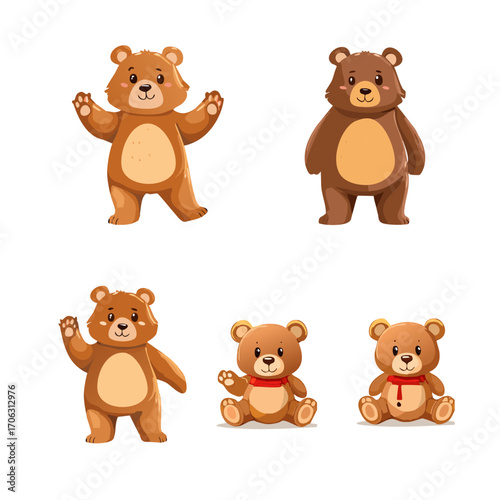Set of teddy bears. Cartoon bear set cute teddy bears and playful brown bears in different poses, perfect for kids illustrations, nursery prints, baby designs, stickers, toys, and fun creative project