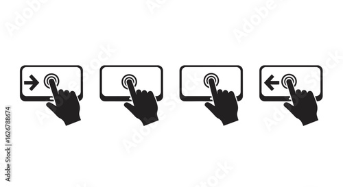 touch, screen, gesture, action, finger, hand, tap, click, swipe, drag, press, digital, interface, user, interaction, technology, mobile, app, icon, symbol, graphic, design, vector, illustration, white, background, minimalist, simple, navigation, input