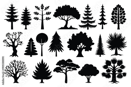 tree, oak tree, pine tree, maple, willow tree, cherry tree, apple tree, fruit tree, tall trees, palm tree, old tree, flowering tree, deciduous tree, evergreen tree, conifer tree, tree branch, tree trunk, tree decoration, silhouette, leaf, vector, illustration, plant, tree