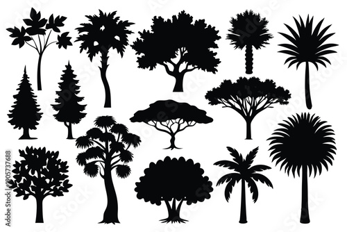 tree, forest, timberland, nature, green, leaf, branch, trunk, bark, root, canopy, foliage, evergreen, deciduous, sapling, shade, oxygen, photosynthesis, ecosystem, biodiversity, habitat, wildlife, timber, wood, plantation, rainforest, mangrove, fruit farm, seasonal, growth, natural, landscape, environment, silhouette, vector, illustration, plant, design, palm