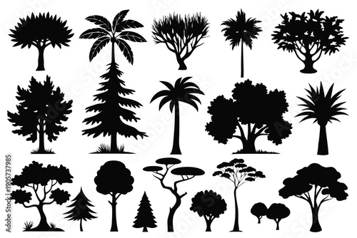 tree, forest, timberland, nature, green, leaf, branch, trunk, bark, root, canopy, foliage, evergreen, deciduous, sapling, shade, oxygen, photosynthesis, ecosystem, biodiversity, habitat, wildlife, timber, wood, plantation, rainforest, mangrove, fruit farm, seasonal, growth, natural, landscape, environment, silhouette, vector, illustration, plant, design, palm