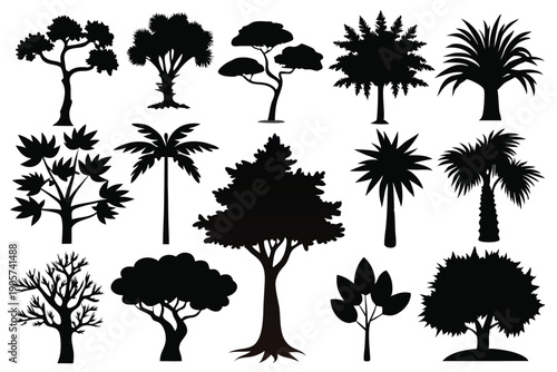 tree, forest, timberland, nature, green, leaf, branch, trunk, bark, root, canopy, foliage, evergreen, deciduous, sapling, shade, oxygen, photosynthesis, ecosystem, biodiversity, habitat, wildlife, timber, wood, plantation, rainforest, mangrove, fruit farm, seasonal, growth, natural, landscape, environment, silhouette, vector, illustration, plant, design, palm