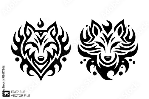 tribal, illustration, head, wolf, tattoo, dog, animal, wild, silhouette, symbol, predator, vector, wildlife, graphic, vignetting, art, emblem, face, black, beast, drawing, mascot, isolated, signs, power, abstract, design, zoo, mammal, style, coyote, danger, nature, beautiful, line, decoration, vintage, outline, logotype, hunting, hunter, cartoon, werewolf, icon, image, night, howling, fur, ornament