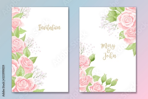 Set of two cards for wedding invitation, birthday greeting with rose flowers