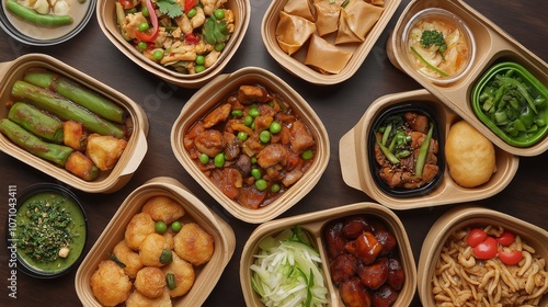 Set of various cardboard or craft paper take away food container