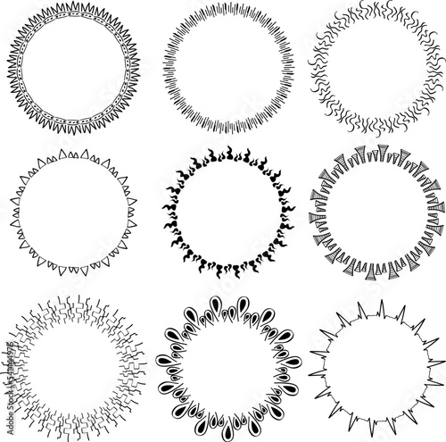 circle, decorate, vintage, hand-drawn, black, border, decorative, outline, round, design, graphic, frame, vector, set, label, element, illustration, decoration, banner, badge, icon, ornament, art, shape, flower, ornate, symbol