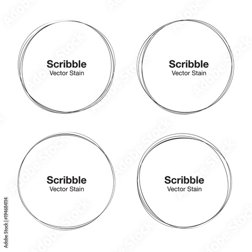 Set of vector hand drawn circles using sketch drawing scribble circle lines. Doodle circular logo design elements. Vector illustration