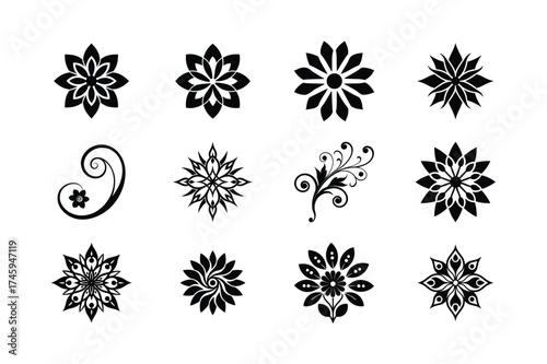 snowflake, christmas, snow, pattern, vector, winter, illustration, design, set, ornament, decoration, flower, icon, symbol, seamless, element, snowflake, ice, holiday, floral, season, christmas, art, cold, silhouette