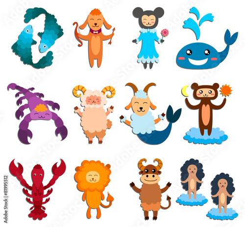 horoscope, zodiac, vector, leo, aries, sagittarius, taurus, virgo, capricorn, libra, gemini, aquarius, cancer, scorpio, pisces, element, fire, water, earth, air, calendar, year, month, astrology, 12, isolated, set, signs, fish, dog, bow, mouse, flower, whale, sheep, bear, sun, cloud, lion, bull, hedgehog, furry, animal, fauna, mammal, crustacean, horn, cartoon, cute