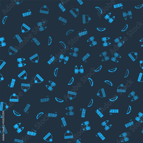 Set Pepper spray, Bow, Binoculars and Winter hat on seamless pattern. Vector