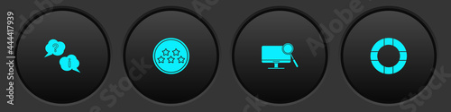 Set Question and Exclamation, Five stars rating review, Computer monitor diagnostics and Lifebuoy icon. Vector