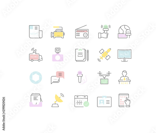 icon, camera, journalism, action, news, video, design, set, vector, flat, web, line, element, linear, logotype, infographic, radio, reportage, sharpened, drone, typewriter, communication, cyberspace, newspaper, media, network, computer, television, social, global, technology, megaphone, television, microphone, telecom, marketing, bubble, paper, website, broadcasting, wireless, newsman, mag, antennae, publication, live, job, interview, massa, report