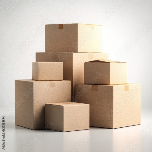 box, cardboard, stacked, shipping, brown, paper, package, delivery, transport, moving, packing, parcel, logistic, freight, good, product, commerce, retail, supply, container, storage, pallet, material, product, shipment, relocation, taped, sealed, protection, light, simple, organised, stacking, business, economy, industrial, commercial, industry, transportation, modern, three-dimensional, rendering, cardboard box