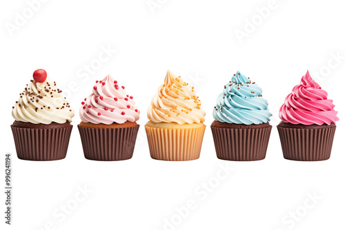 Several cupcakes on transparent background. Pastry related themes. Bakery professions. Cupcake making. Buying and selling cupcakes. Images for graphic designers. Cookbook. Isolated cupcake.