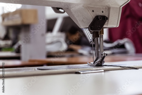 Sewing machine needles close-up in the workshop