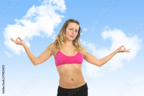 woman, girl, sexy, sport, yoga, lotus, hand, pose, position, sportswoman, fitness, gym, fit, body, health, care, slim, beautiful, young, attractive, cute, top, bra, abdomen, whip, blond, female, healthy, happy, exercise, relax, beauty, model, piercing, nourishment, well-being, wellness, person, people, hair, head, face, arm, thin, hot, gorgeous, posing, caucasian, white, peace
